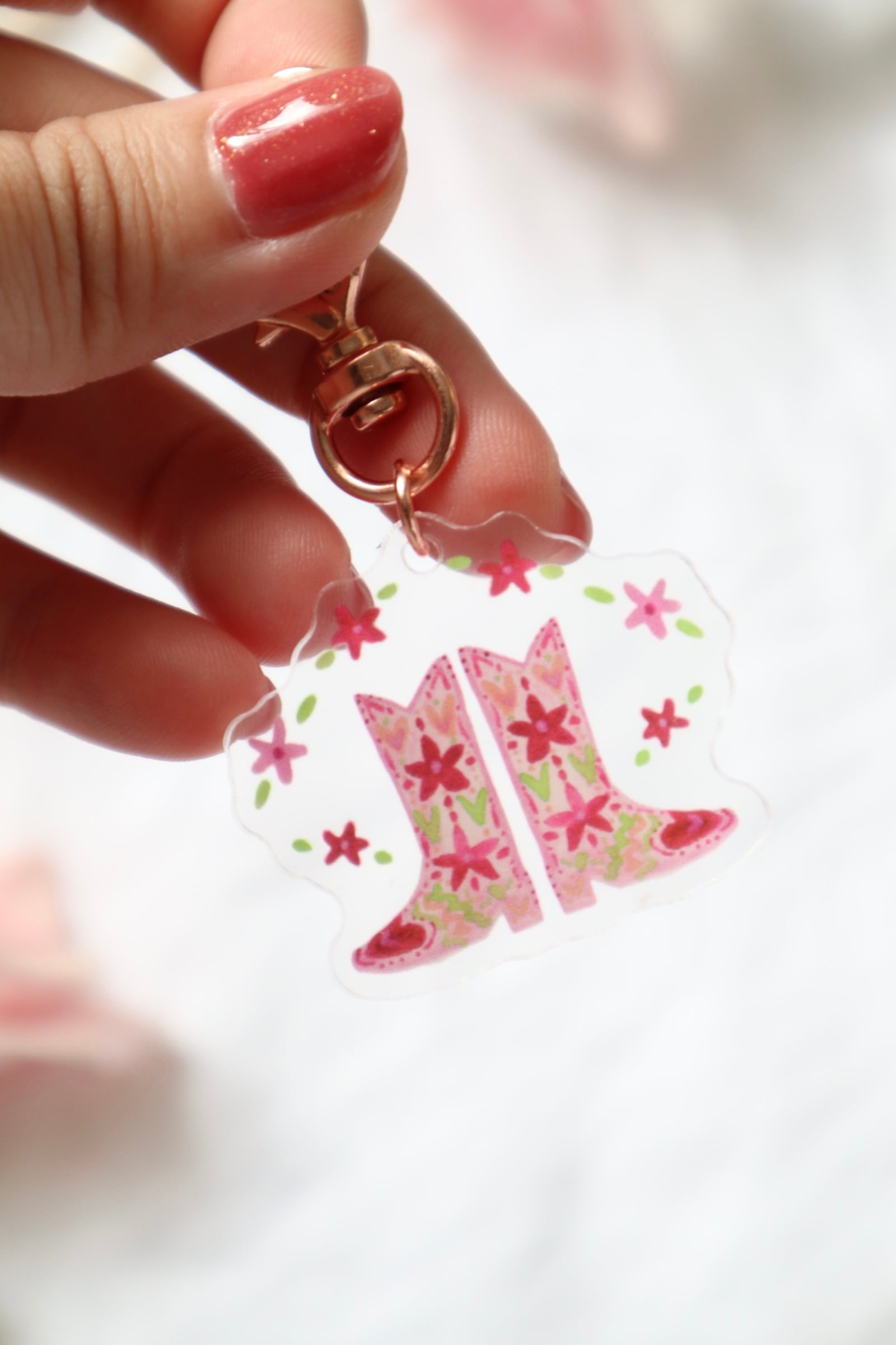 カラビナ部分もかわいいピンクゴールド色です。